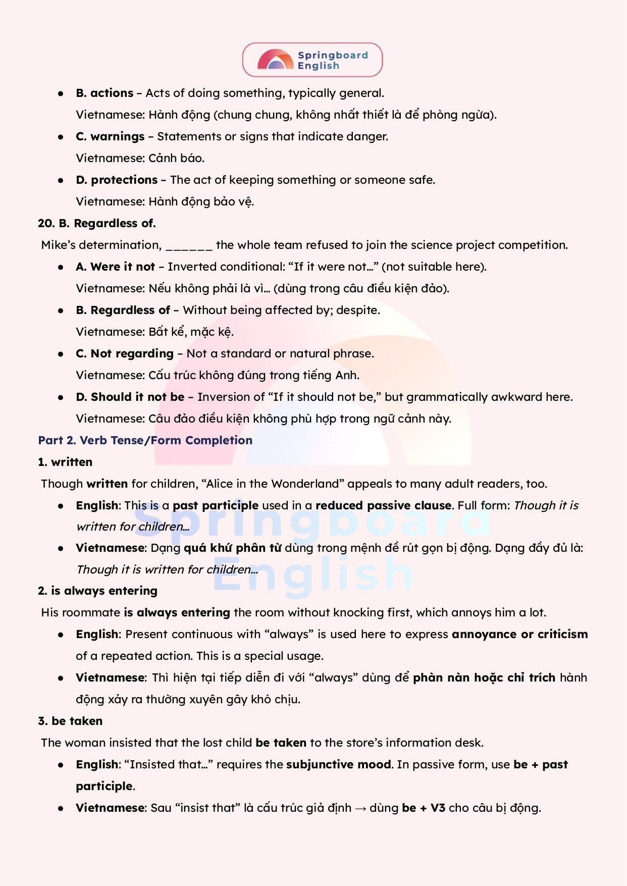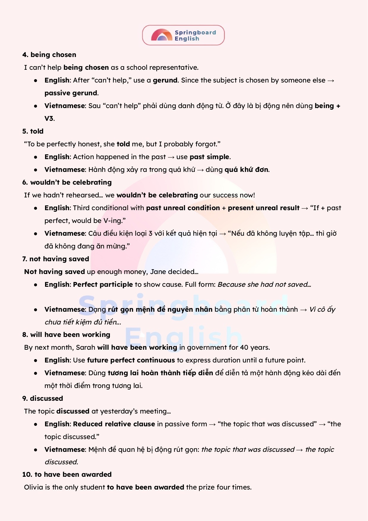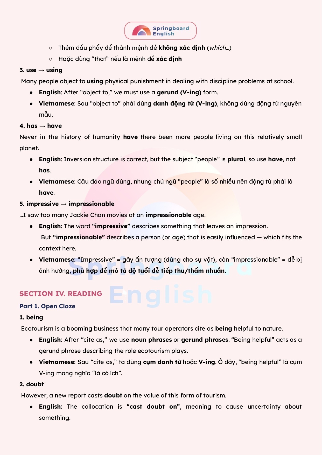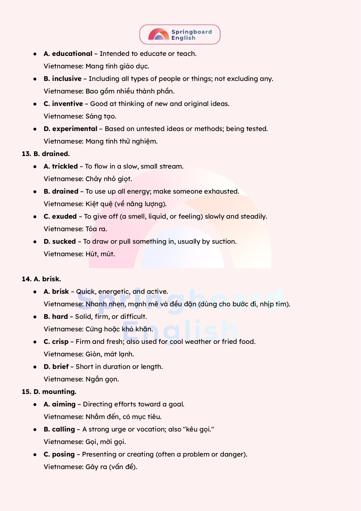 Với nỗ lực để luôn tạo ra những bài giảng – học liệu hay nhất dành cho kì thi chuyên Anh – HSG tiếng Anh cấp tỉnh/thành phố đến cấp Quốc Gia, đội ngũ mentors trung tâm Springboard (Nhà Xuân) luôn biên soạn những tài liệu mới nhất với giải thích tận tâm – chi tiết.