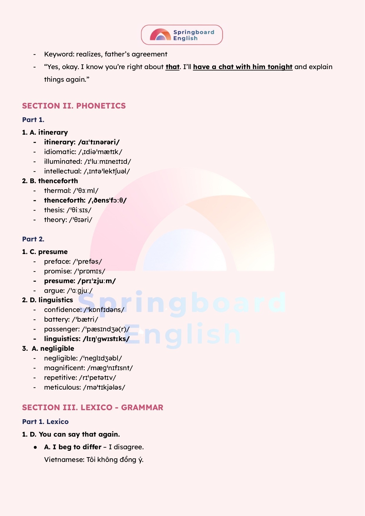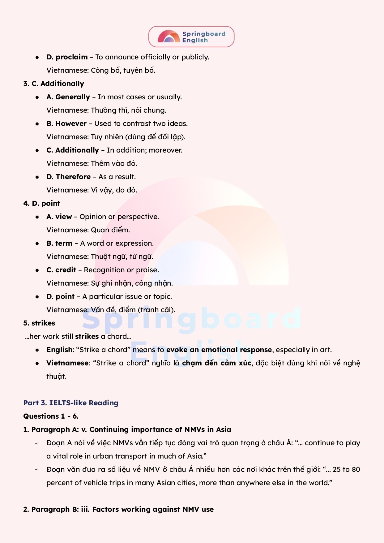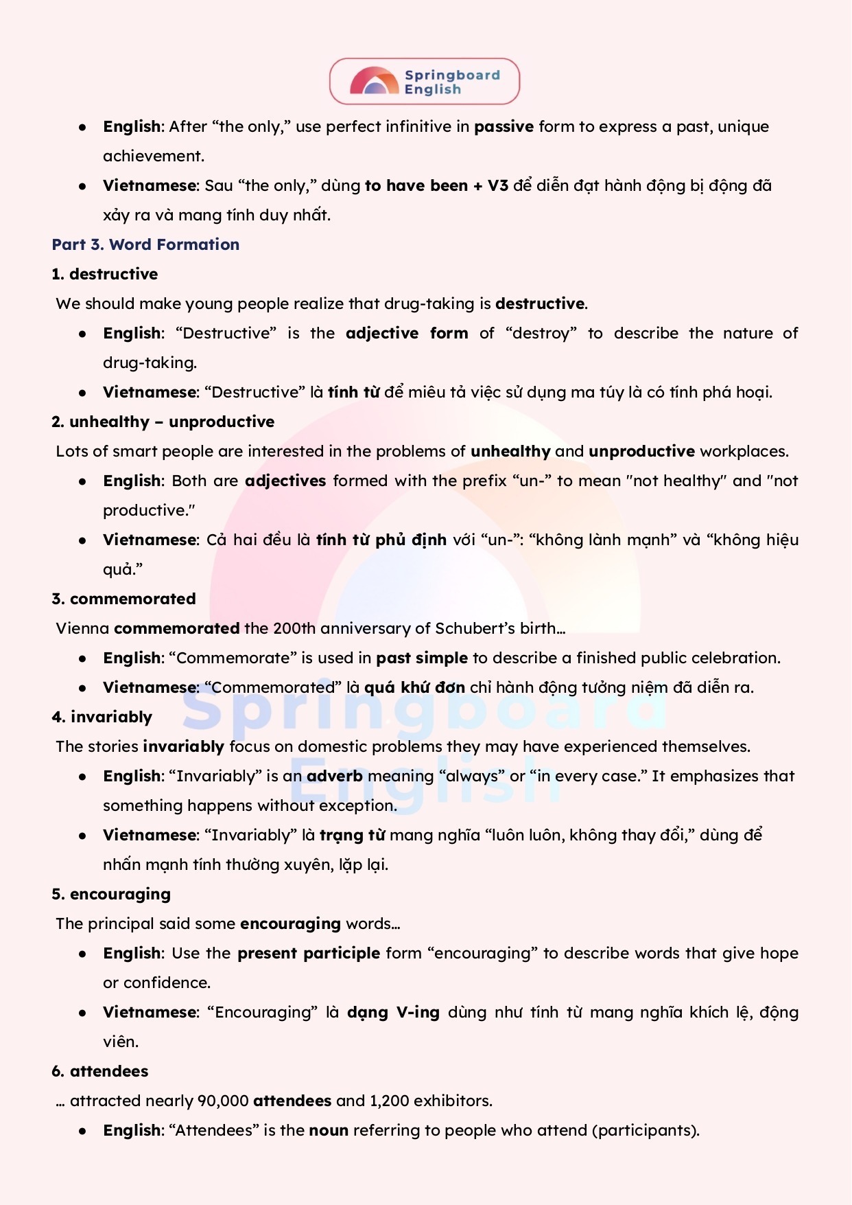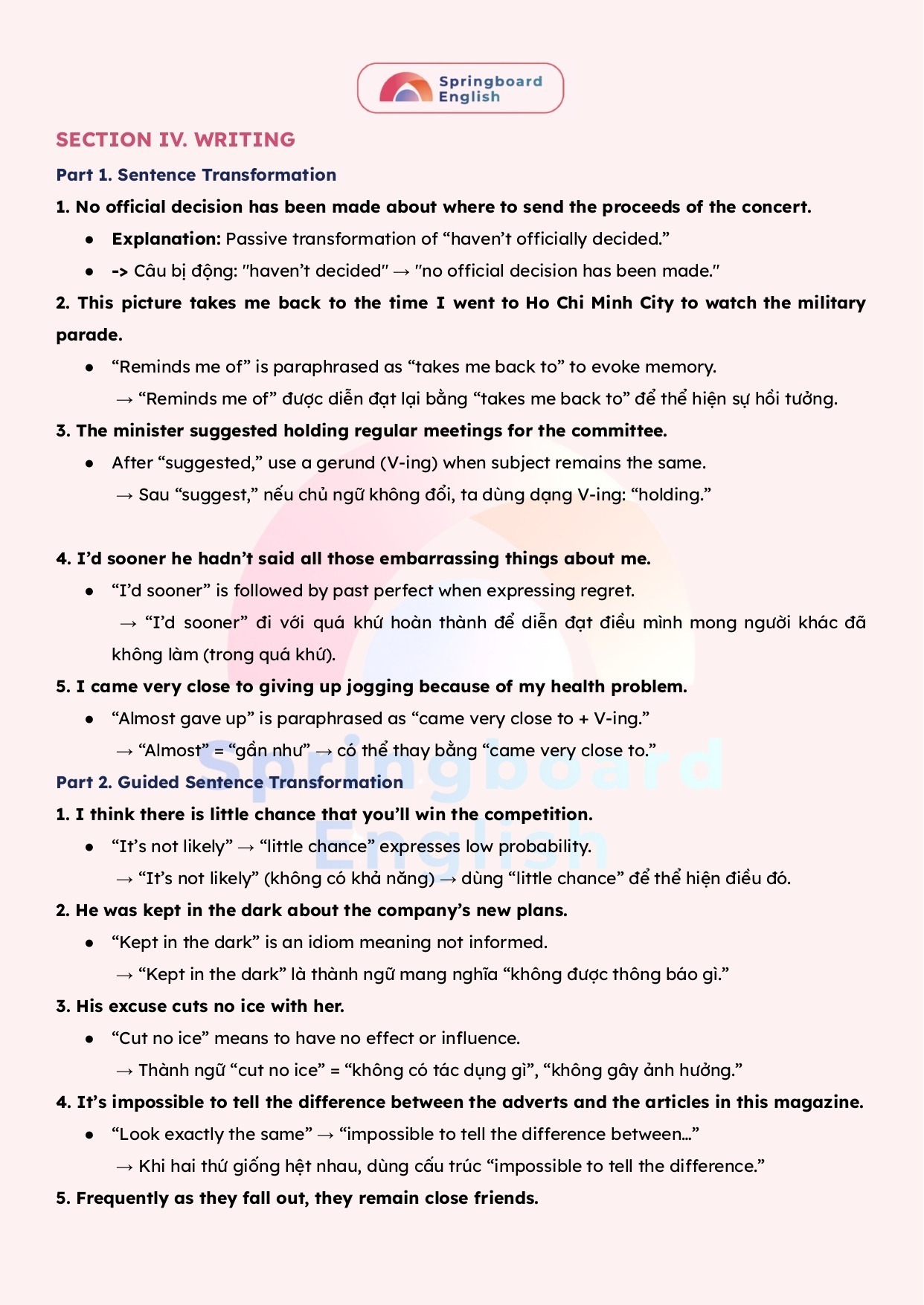 Với nỗ lực để luôn tạo ra những bài giảng – học liệu hay nhất dành cho kì thi chuyên Anh – HSG tiếng Anh cấp tỉnh/thành phố đến cấp Quốc Gia, đội ngũ mentors trung tâm Springboard (Nhà Xuân) luôn biên soạn những tài liệu mới nhất với giải thích tận tâm – chi tiết.