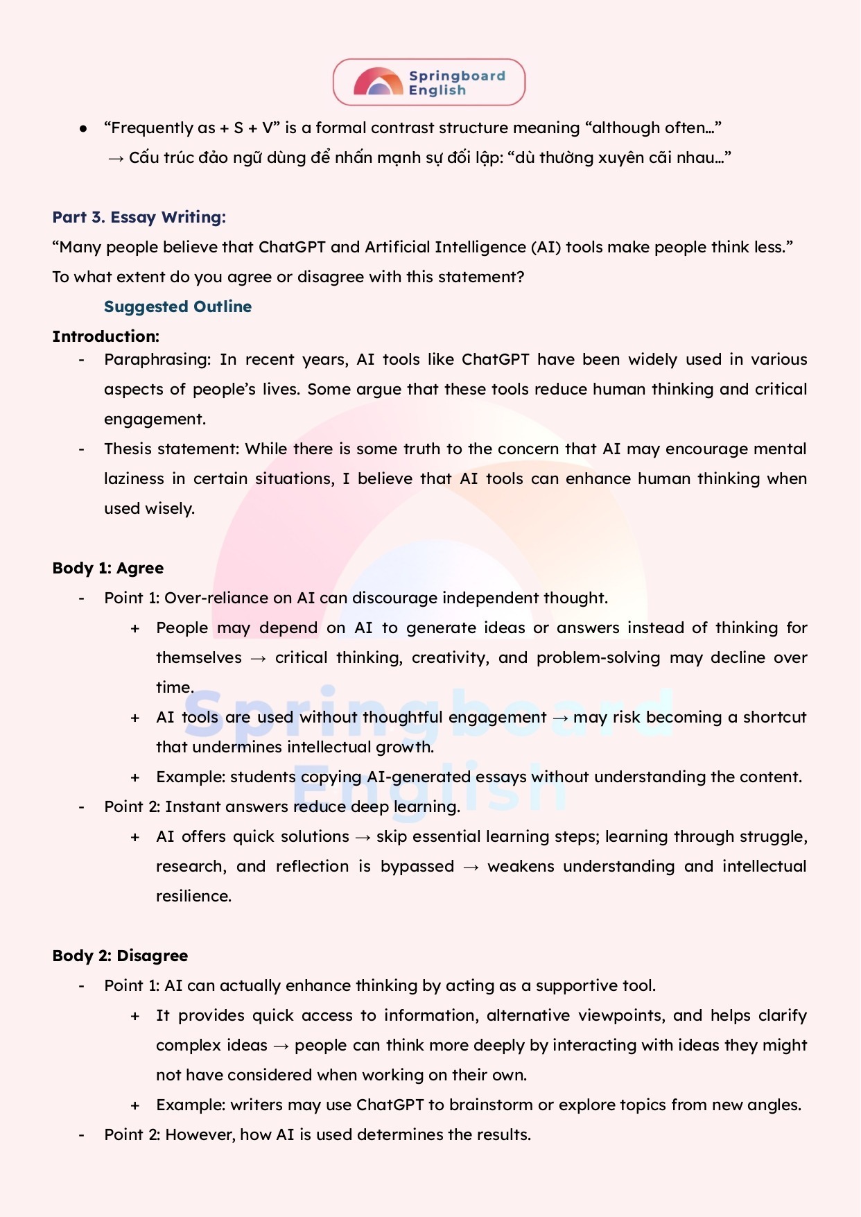 Topic: “Many people believe that ChatGPT and Artificial Intelligence (AI) tools make people think less.”