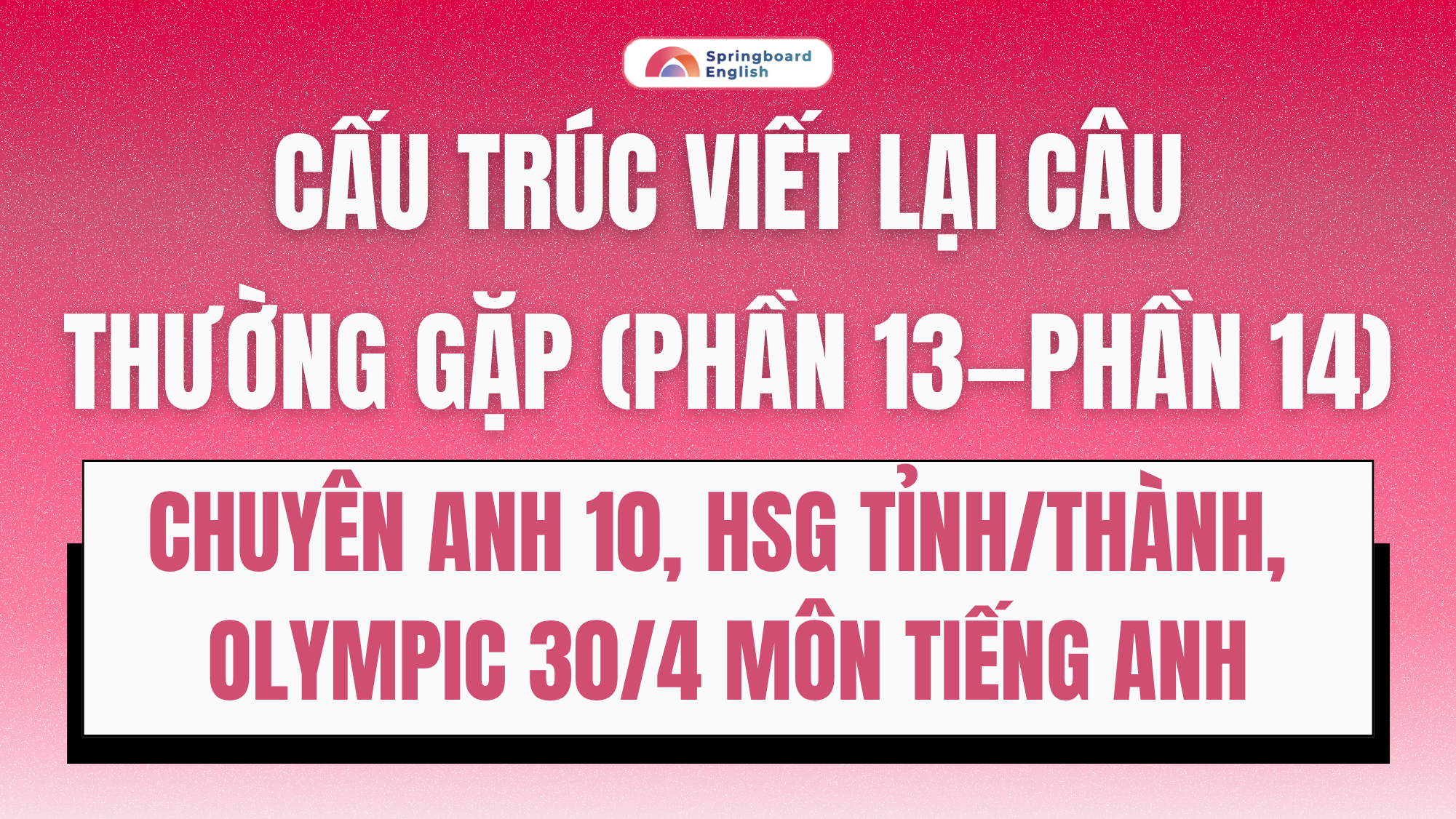 Bài viết này tổng hợp hơn 5000 cấu trúc Viết Lại Câu thường xuất hiện trong đề thi Chuyên Anh, HSG Anh, nơi các học sinh có thể theo dõi toàn bộ các bản cập nhật hàng tuần vào Thứ 4, Thứ 6 do đội ngũ trung tâm Springboard (Lớp học nhà Xuân) biên soạn.