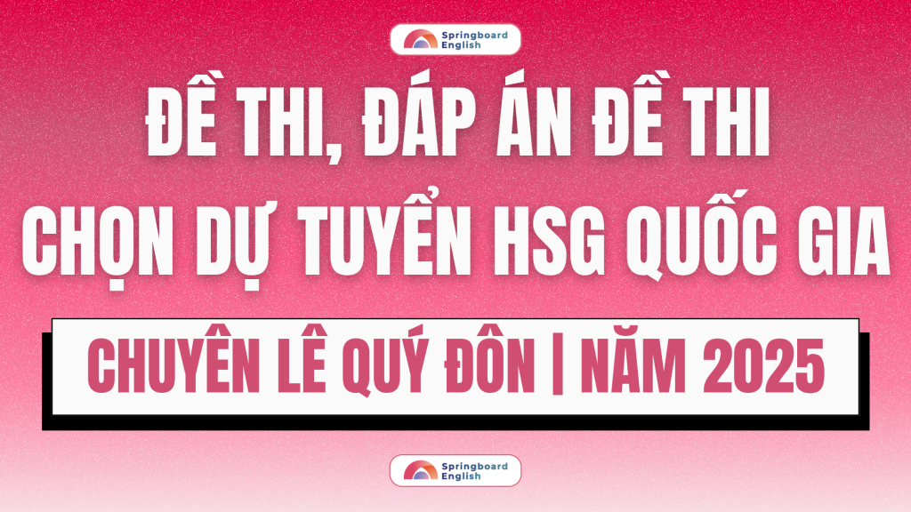 Bài viết này được đội ngũ trung tâm Springboard (Lớp học nhà Xuân) tổng hợp đề thi chính thức và đáp án chi tiết của kỳ thi chọn đội tuyển HSGQG Tiếng Anh THPT Chuyên Lê Quý Đôn năm học 2025–2026, được sưu tầm từ nguồn Sở GD&ĐT hoặc chia sẻ xác thực từ giáo viên, học sinh đội tuyển.