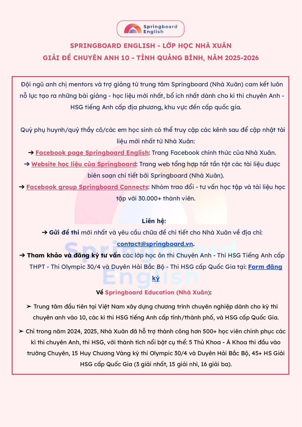 - Gửi đề thi mới nhất cho Nhà Xuân về địa chỉ: contact@springboard.upmedia.vn