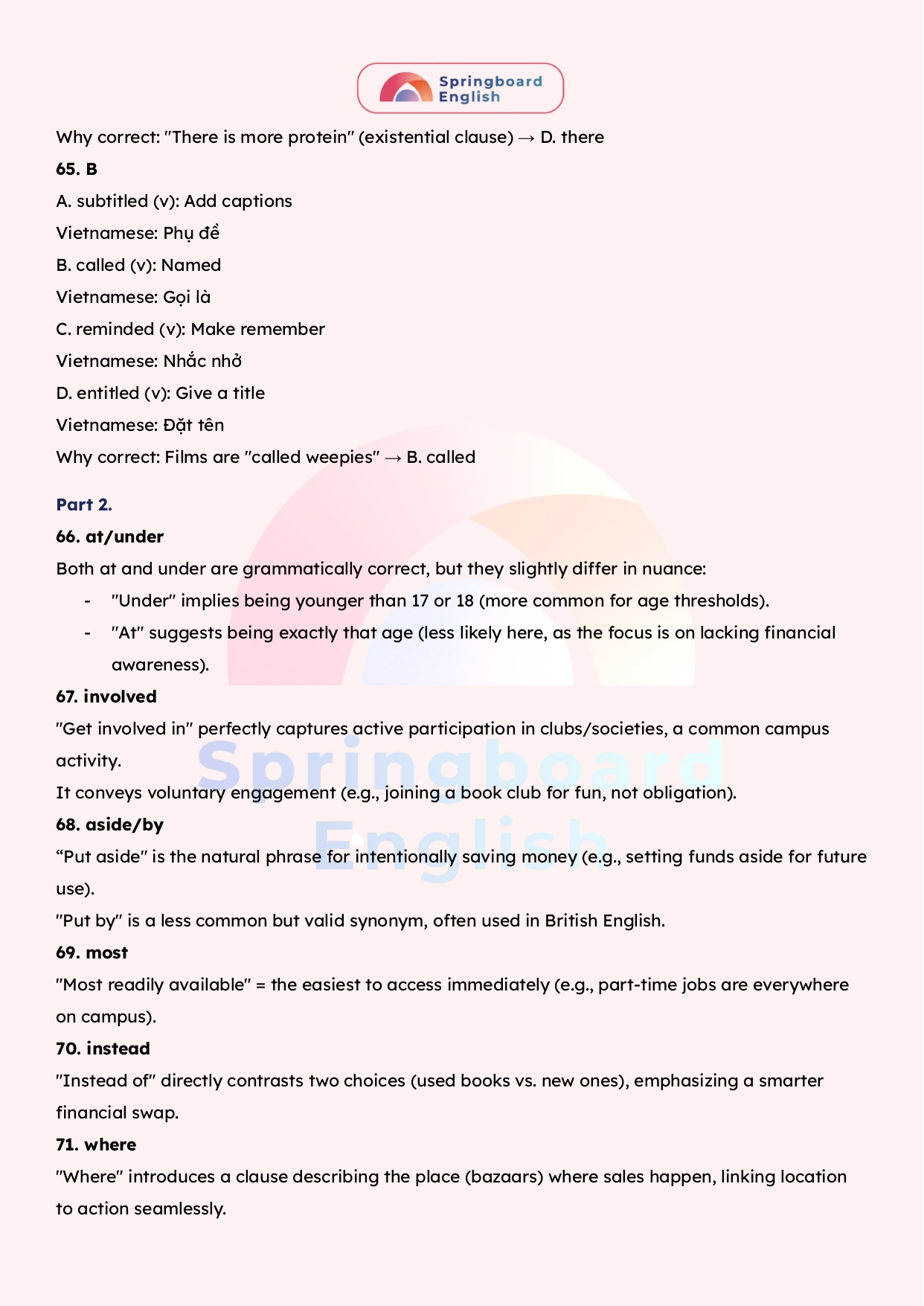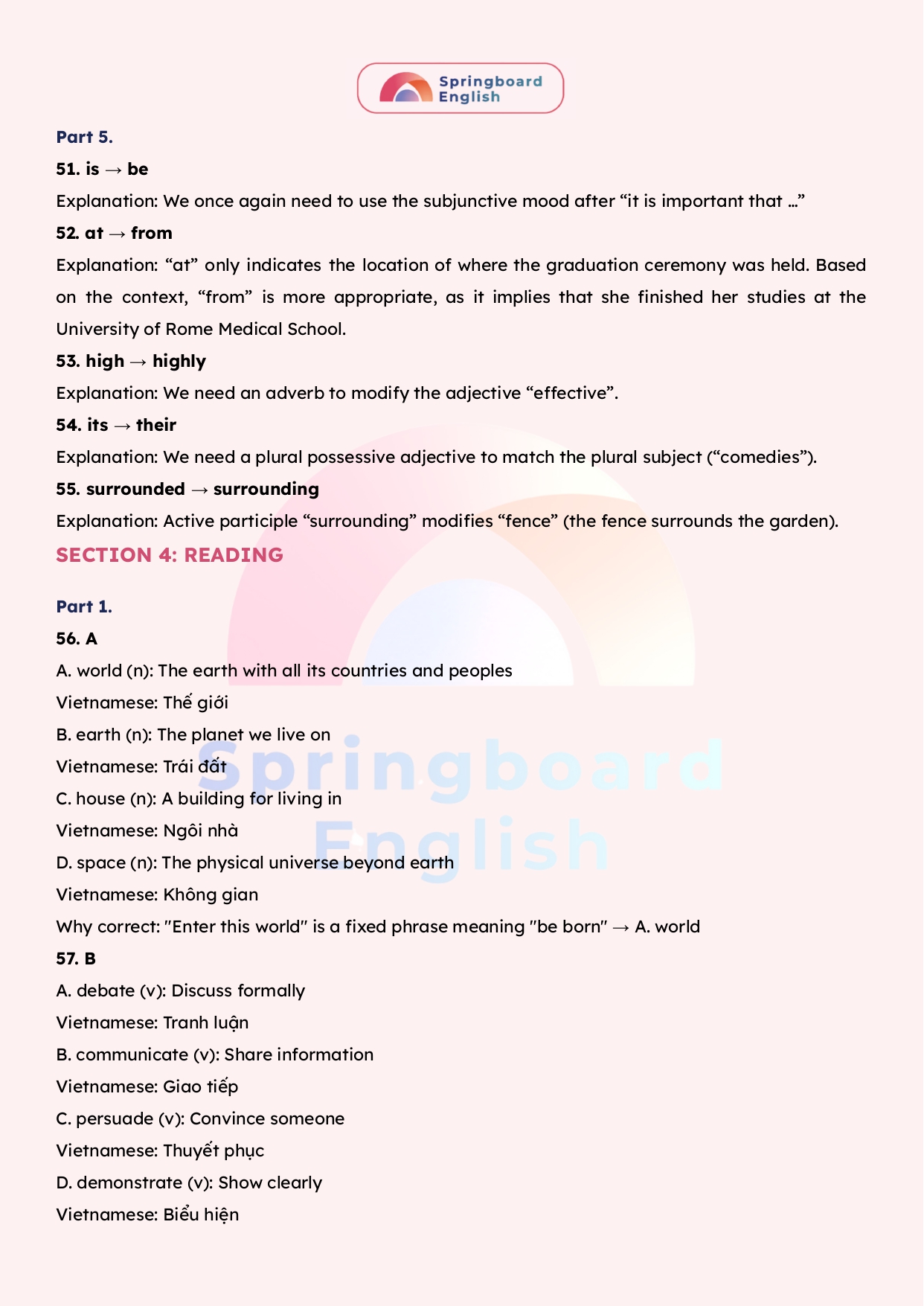 Với nỗ lực để luôn tạo ra những bài giảng – học liệu hay nhất dành cho kì thi chuyên Anh – HSG tiếng Anh cấp tỉnh/thành phố đến cấp Quốc Gia, đội ngũ mentors trung tâm Springboard (Nhà Xuân) luôn biên soạn những tài liệu mới nhất với giải thích tận tâm – chi tiết.