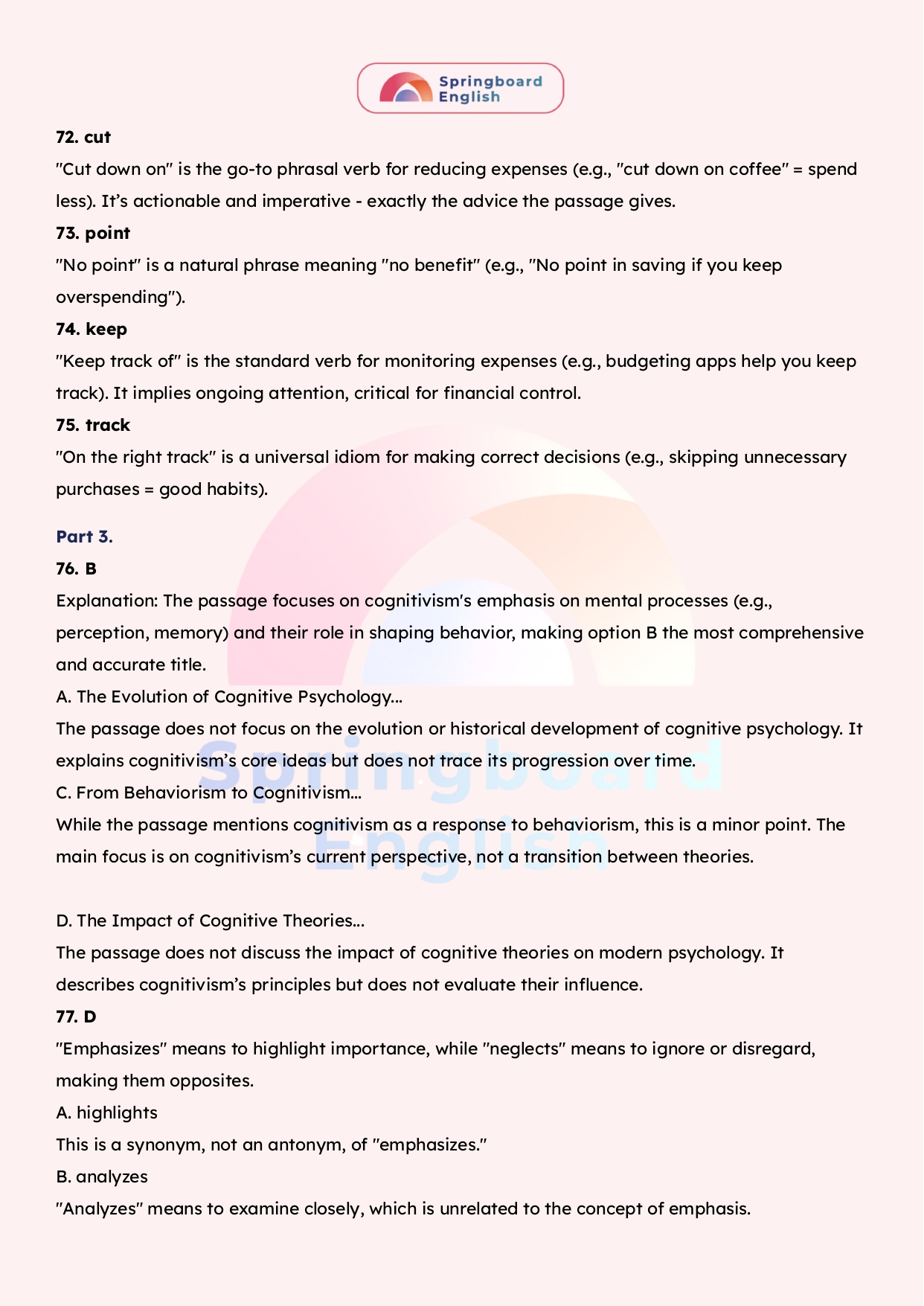 Another alternative is to buy used books (70) _____ of brand new ones and sell your old books as well. Most student unions organize regular bazaars, (71) _____ you can sell things you don’t need; CDs, video games, even used clothes. Remember: one man’s trash is another man’s treasure! The bottom line is either earn more or spend less. This means that you have to (72) _____ down on unnecessary costs.