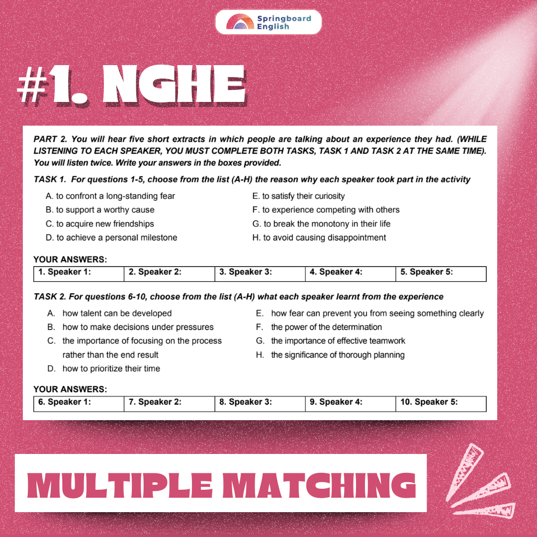 2. Dạng Multiple Matching Listening – Nghe Ghép Nhiều Lựa Chọn
