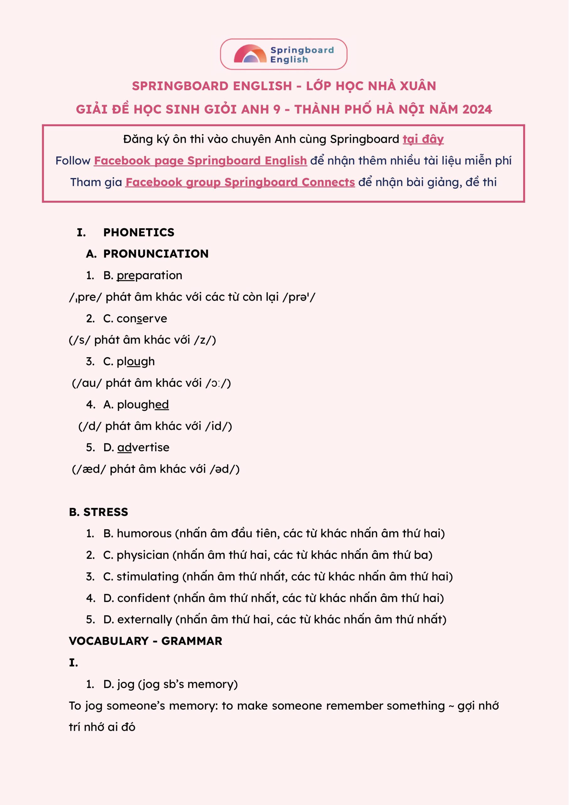 Ảnh 1: Đáp án đề thi HSG Anh lớp 9 thành phố Hà Nội năm 2024