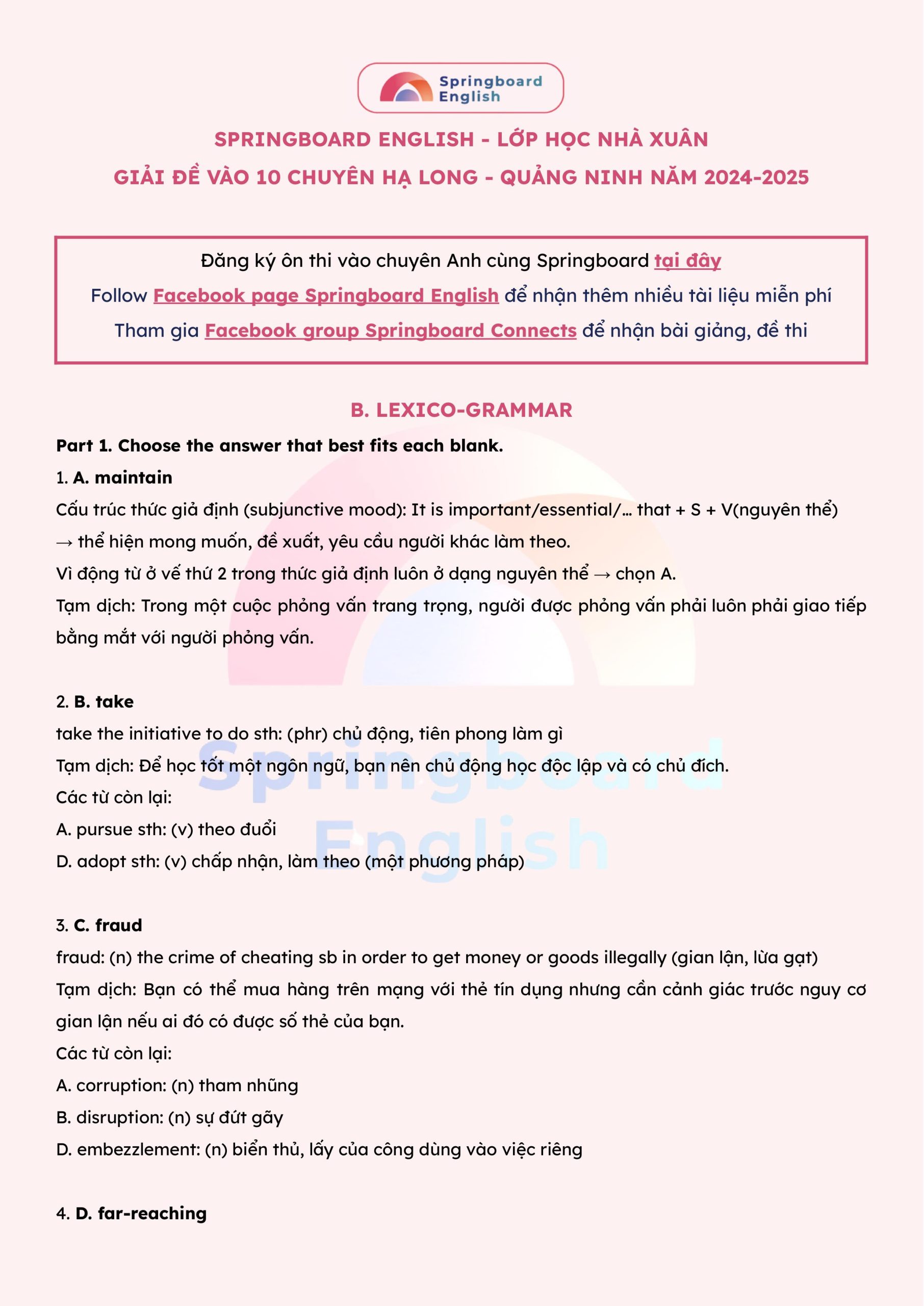 Ảnh 1: Giải thích chi tiết đáp án đề chuyên Anh 10 – chuyên Hạ Long – tỉnh Quảng Ninh năm 2024-2025