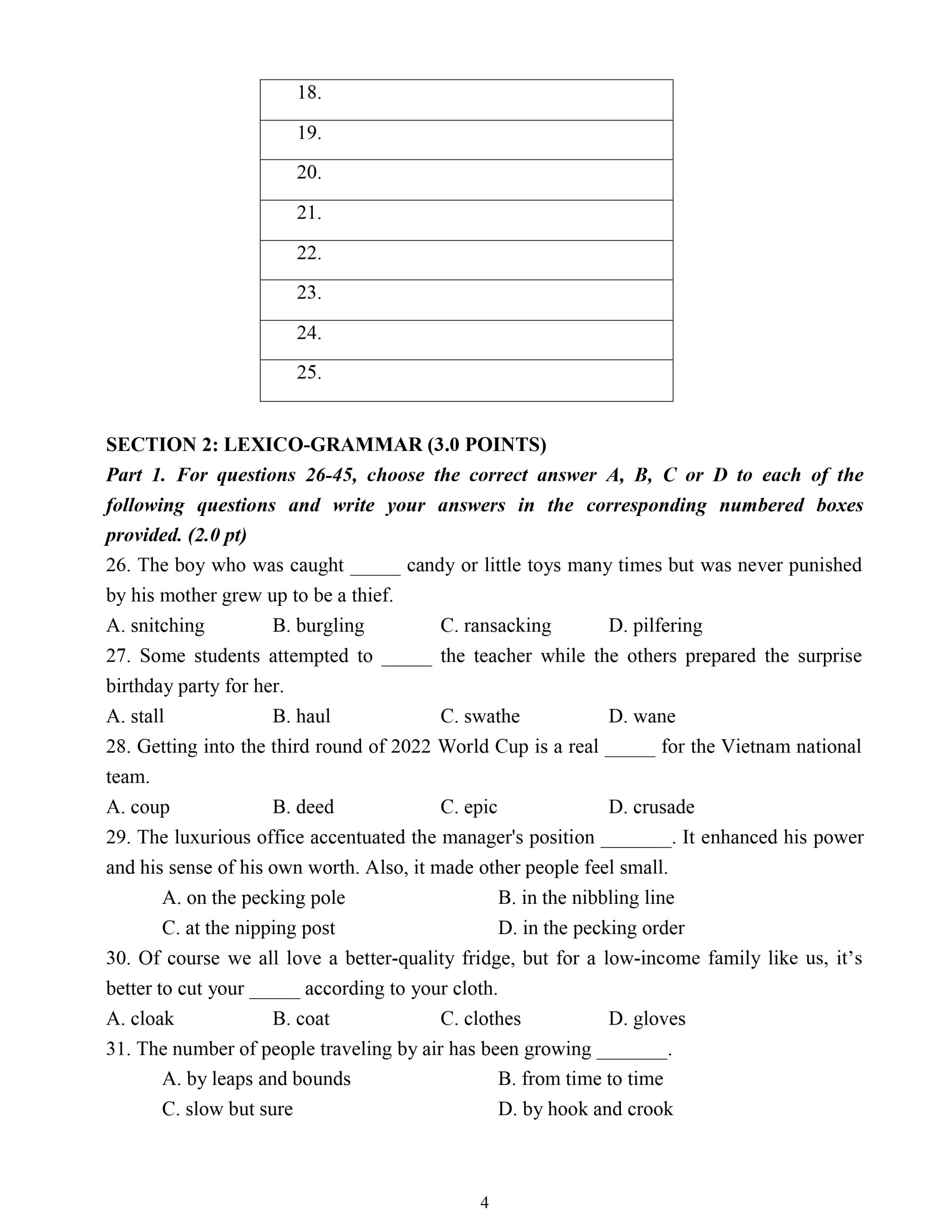 Đề chọn đội tuyển HSGQG Tiếng Anh – tỉnh Hưng Yên năm 2022-2023