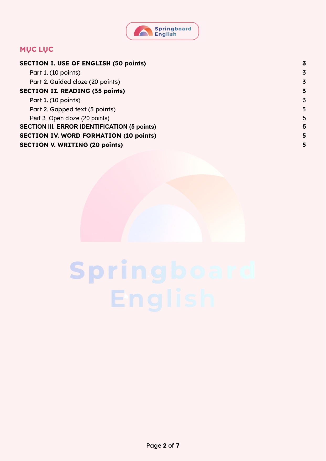 Với nỗ lực để luôn tạo ra những bài giảng – học liệu hay nhất dành cho kì thi chuyên Anh – HSG tiếng Anh cấp tỉnh/thành phố đến cấp Quốc Gia, đội ngũ mentors trung tâm Springboard (Nhà Xuân) luôn biên soạn những tài liệu mới nhất với giải thích tận tâm – chi tiết.