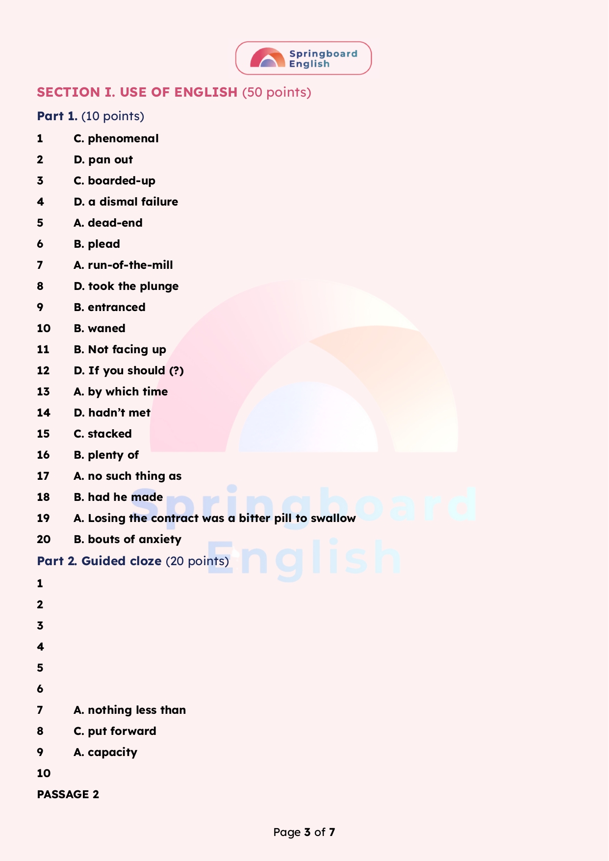 PART B. GRAMMAR AND VOCABULARY (2.5 points)