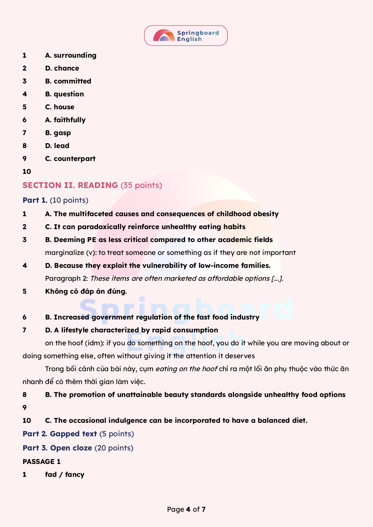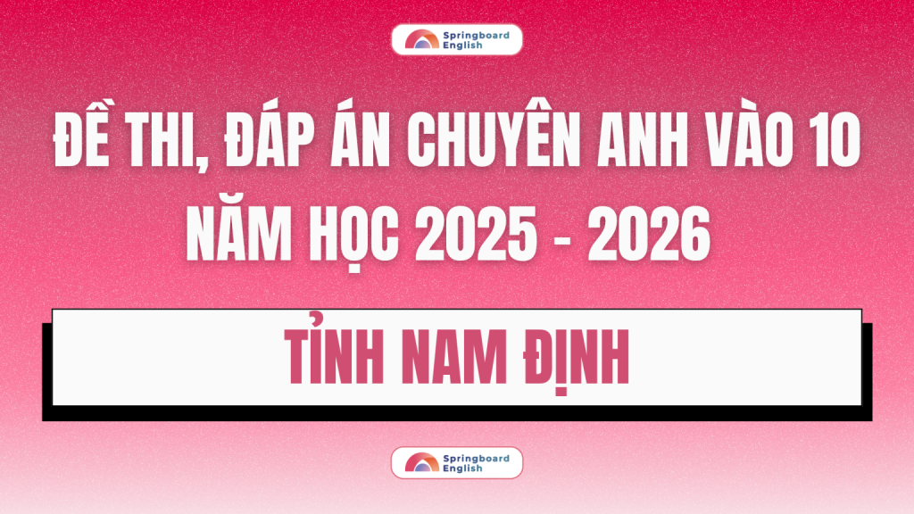 Đội ngũ anh chị trung tâm Springboard (Nhà Xuân) xin gửi đến các quý phụ huynh, thầy cô, các em học sinh tổng hợp đề thi và đáp án đề thi Chuyên Anh vào lớp 10 tỉnh NAM ĐỊNH, thi vào THPT Chuyên Lê Hồng Phong năm 2025-2026 (có đáp án và giải thích chi tiết).