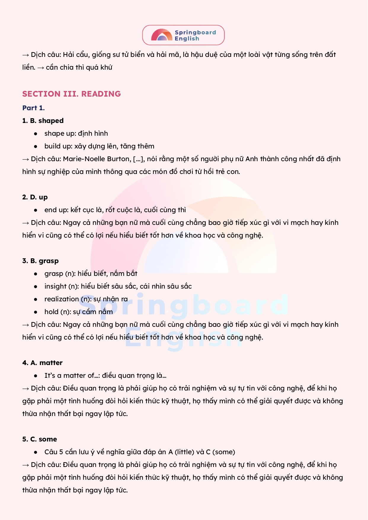 Giải thích đáp án chi tiết đề Chuyên Anh vào 10 tỉnh Nam Định năm 2025-2026 (Bản tham khảo, biên soạn bởi mentors Nhà Xuân)