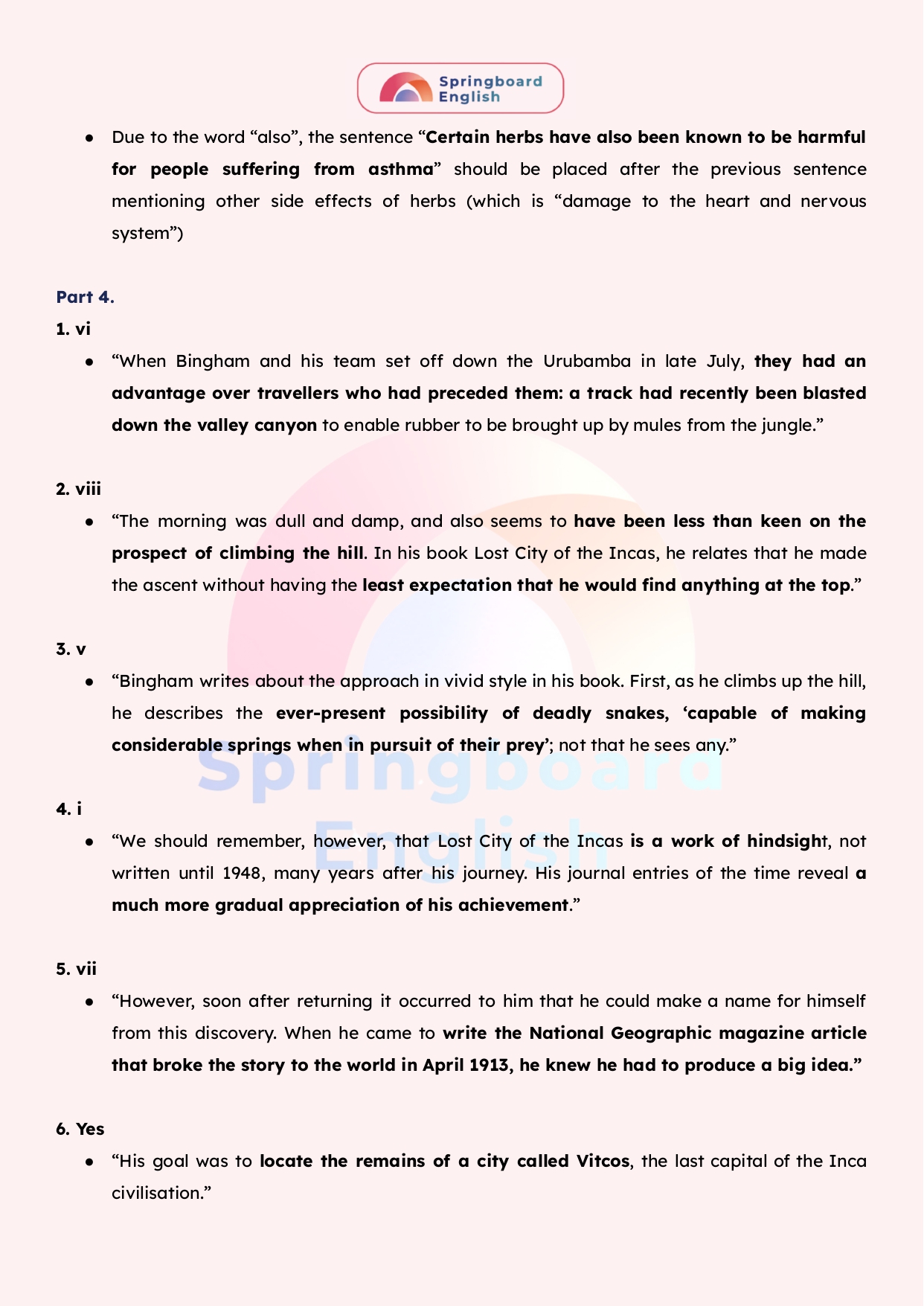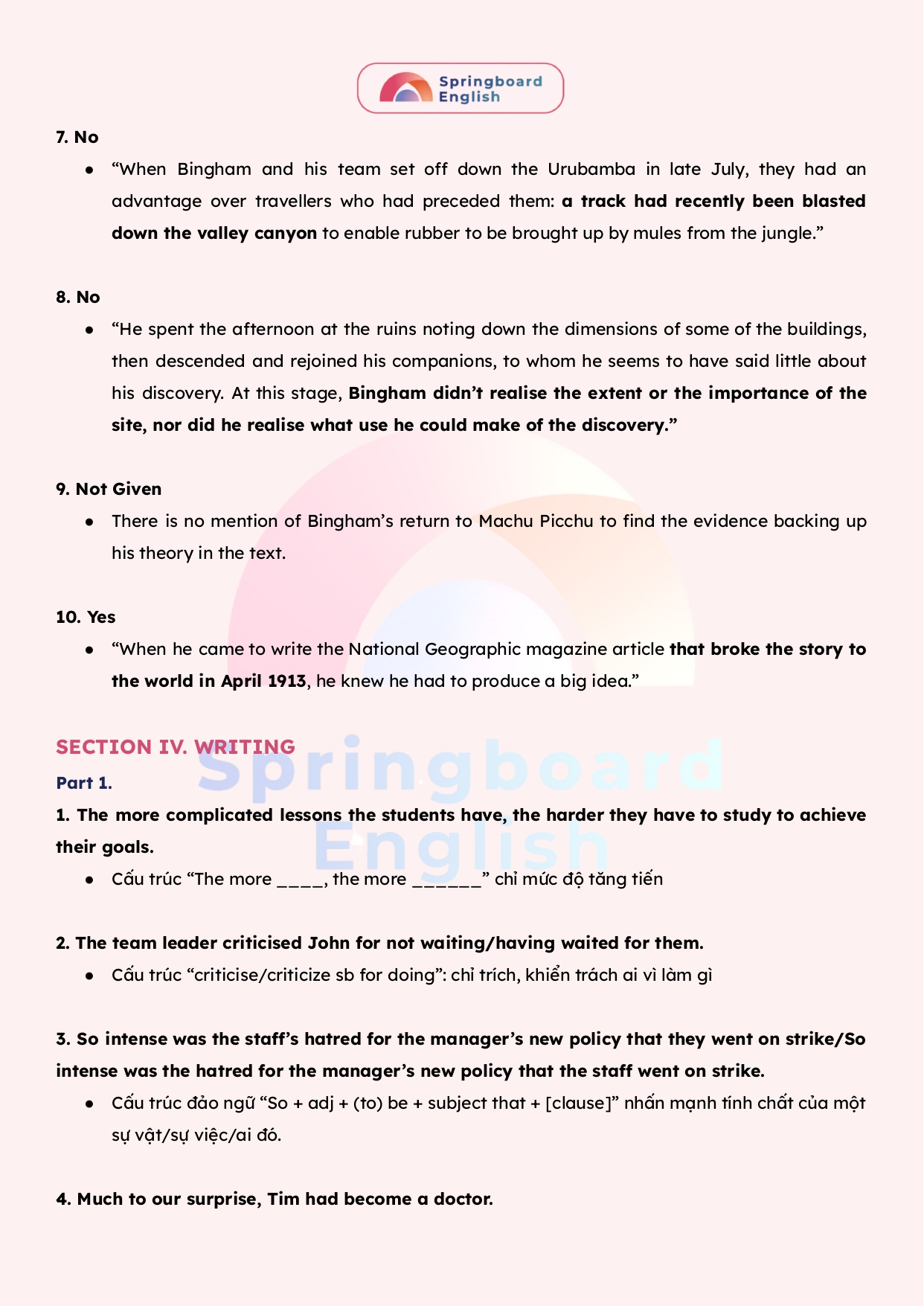 3. Bingham understood the significance of Machu Picchu as soon as he saw it. ______