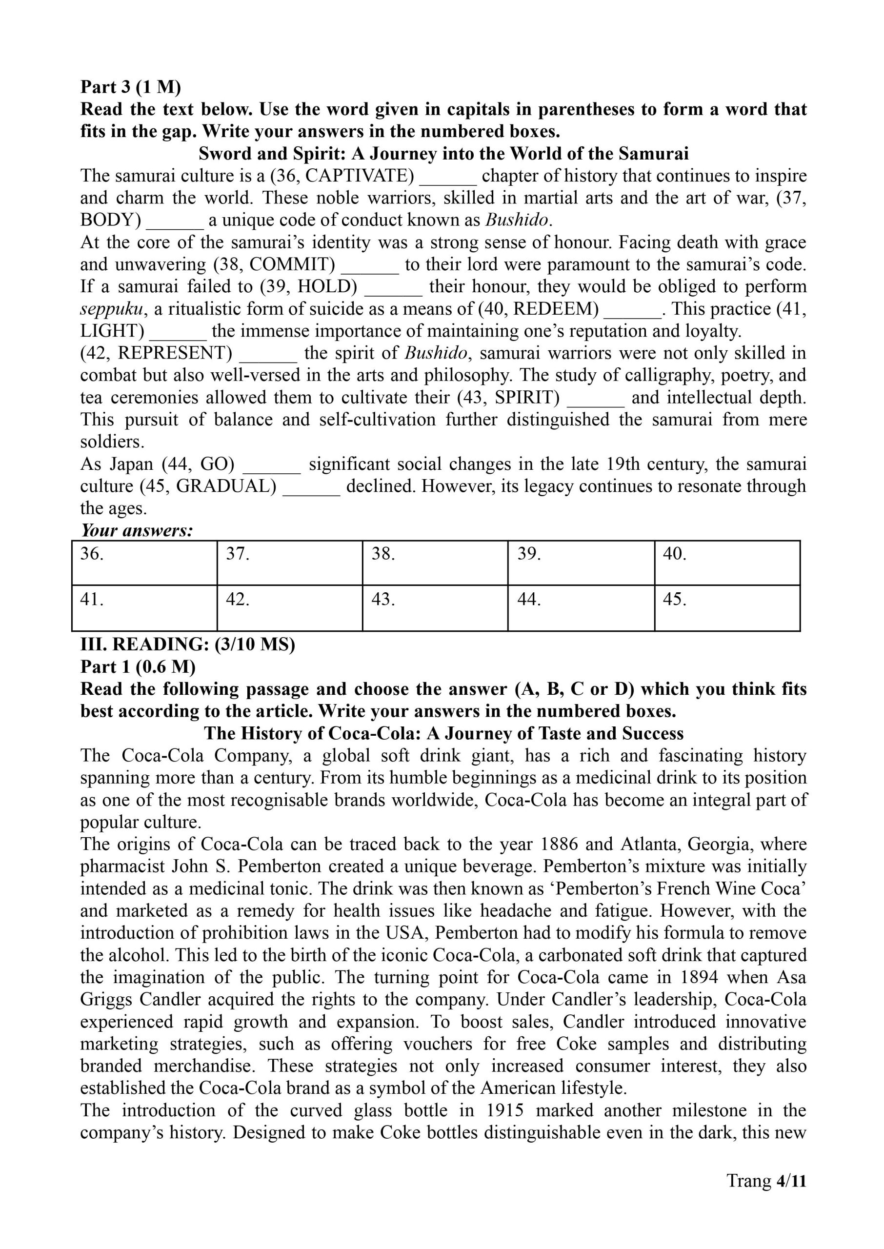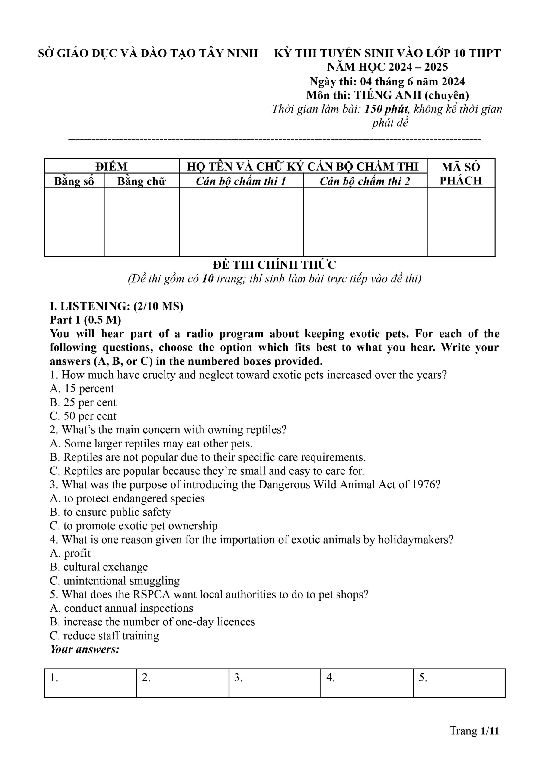 Xem đáp án đề thi tuyển sinh chuyên Anh lớp 10 - THPT chuyên Hoàng Lê Kha - tỉnh Tây Ninh năm 2024-2025 tại đây