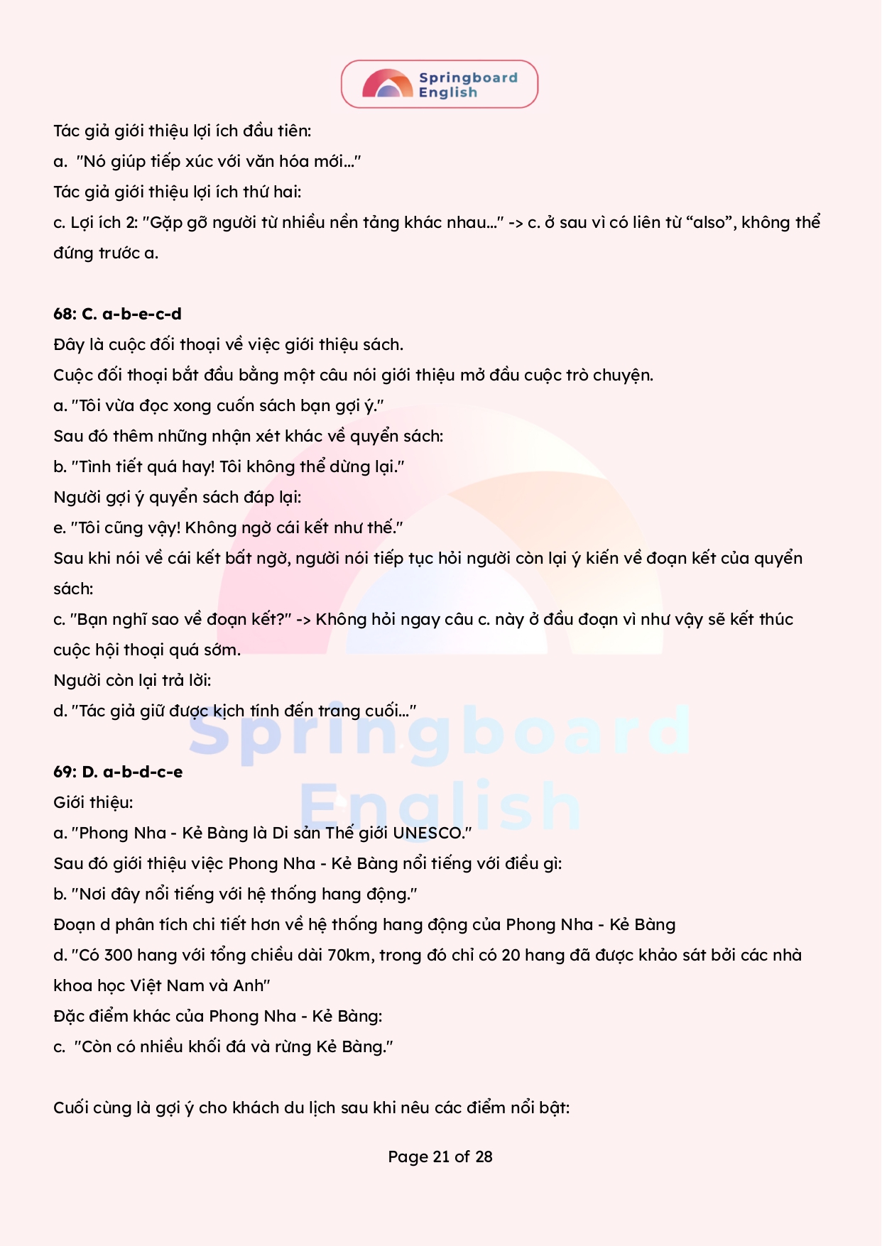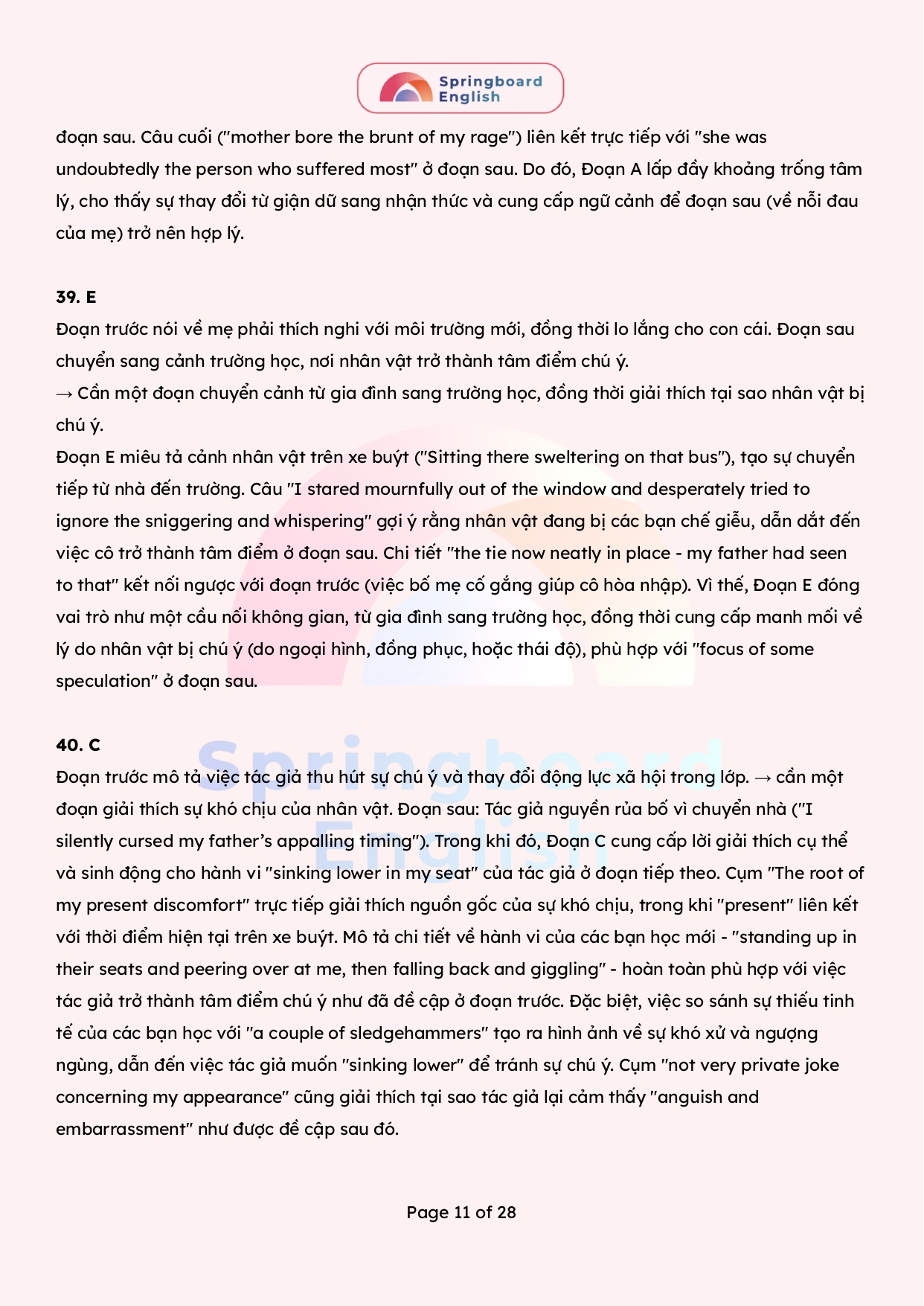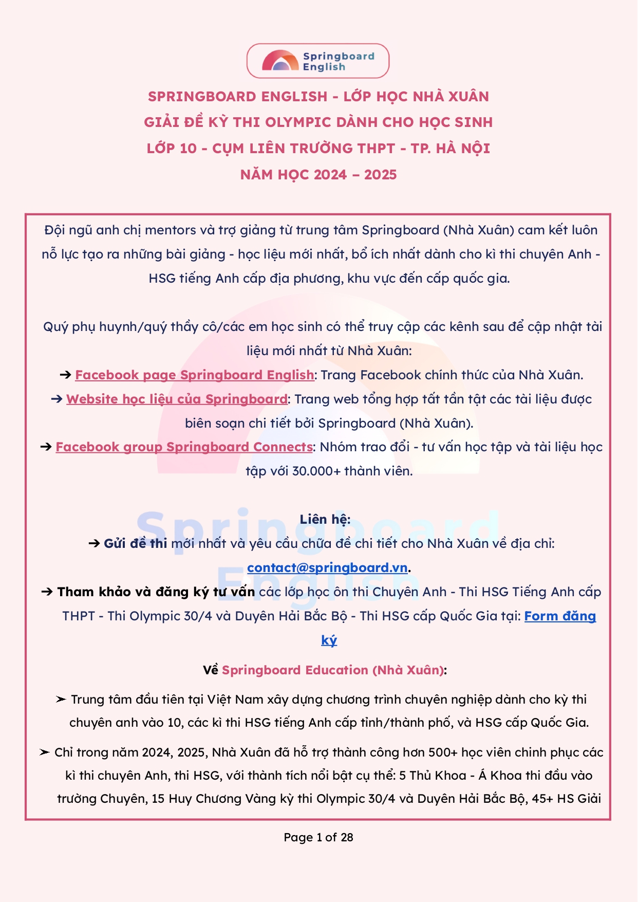 Đội ngũ anh chị trung tâm Springboard (Nhà Xuân) xin gửi đến các quý phụ huynh, thầy cô, các em học sinh tổng hợp đề thi và đáp án đề thi Olympic liên cụm trường THPT Hà Nội môn tiếng Anh năm 2024-2025 (có đáp án và giải thích chi tiết).